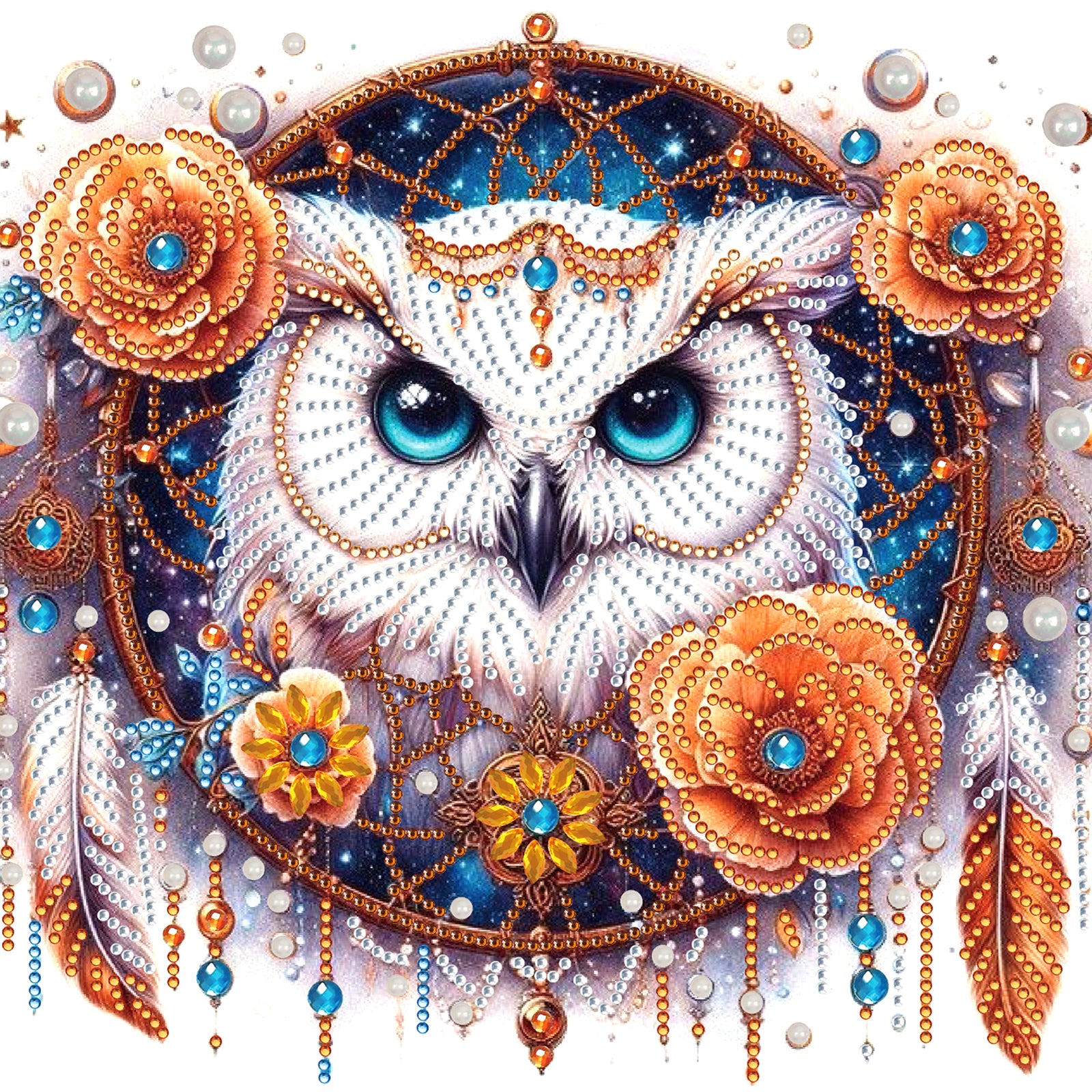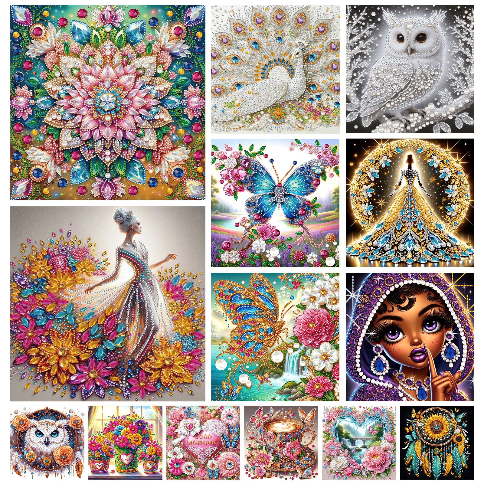 Material: Rhinestone + Canvas (Round Diamond + Special Shaped Diamond + Pearl Diamond)