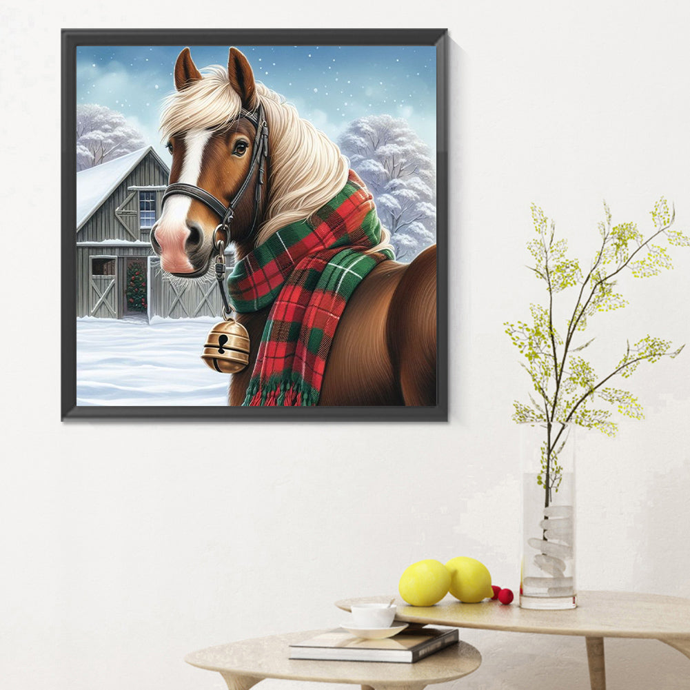 Pferde in der Schneeszene-Voller Diamond Painting-30x30cm